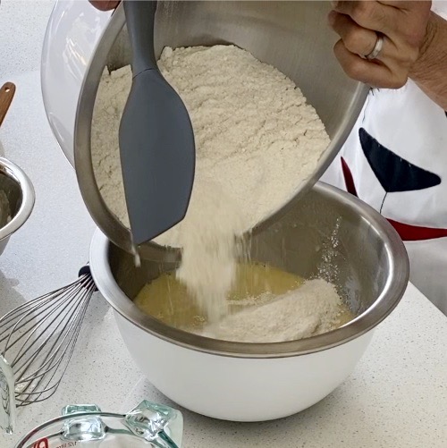 2. Whisk together flour, salt, baking powder and sugar in a large bowl.